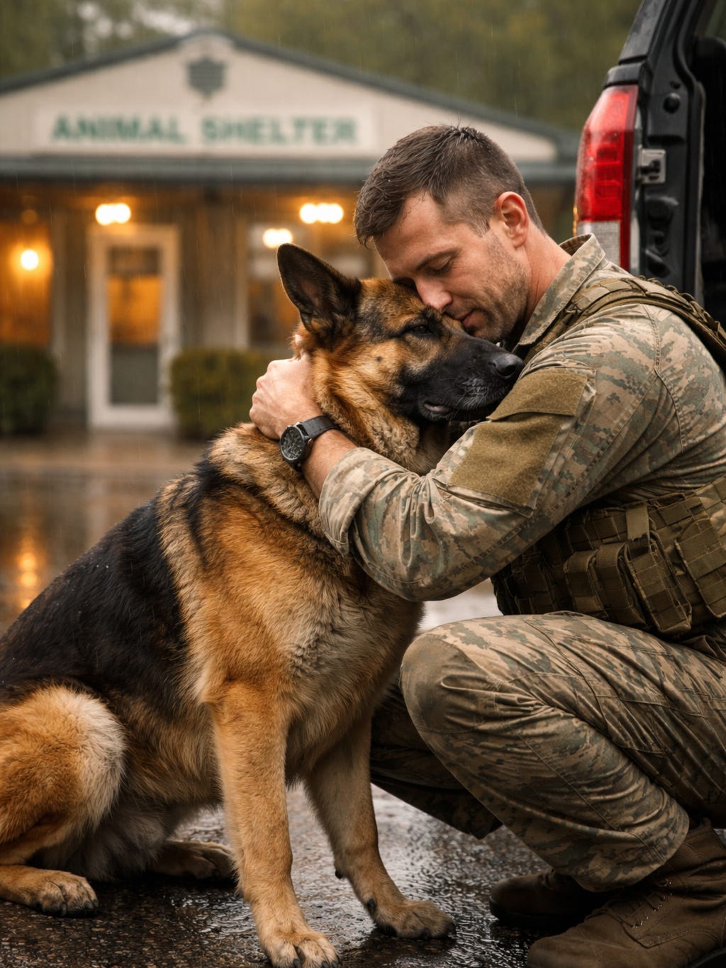 Rex moved forward without hesitation, his body pressing into the man, his head settling against his shoulder as if confirming what he already knew.