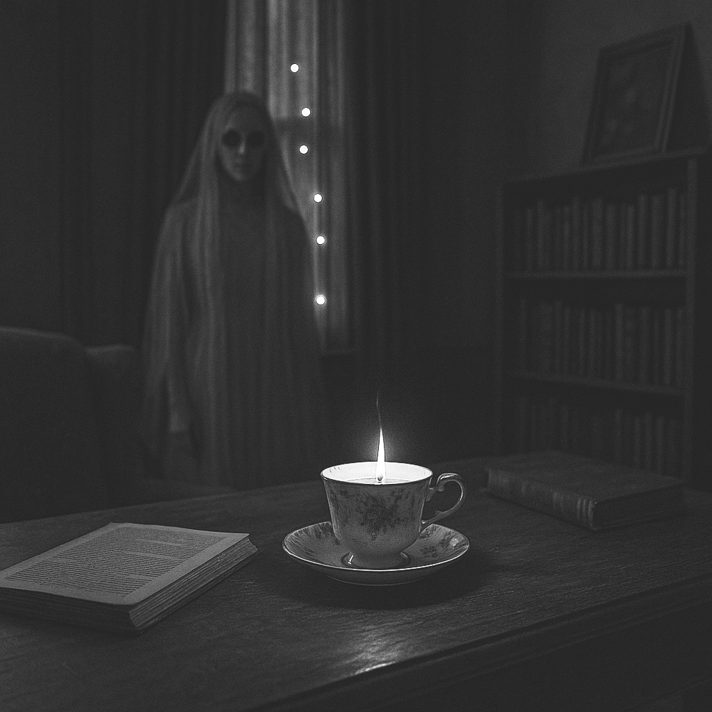 He had not meant to write about the alley. He did not know which her he meant until the second sentence arrived under his hand. He had been blocking a scene for a month: a woman cut through the alley behind the bodega because the main lights had gone out and the alley was the shorter way and because people always think nothing happens to them. He had written She heard and She turned and She told herself and all of it had been scaffolding around an empty box. Now the box had something in it. He wrote fast, not because he wanted to but because if he did not the sentences dragged their nails on the inside of his skull. The woman paused at the steel door of the deli, caught her face in it flattened by dented metal, smeared by old grease—and saw behind her something tall and patient. The reflection was a fraction ahead of her. The reflection showed her death before she turned to meet it. The scene unspooled, sure and cold. The thing behind her did not rush. The reflection’s eyes went wider a second before her real eyes did. When the blade went in the reflection’s throat, a line opened in the steel, a scratch too deep to be a scratch.
